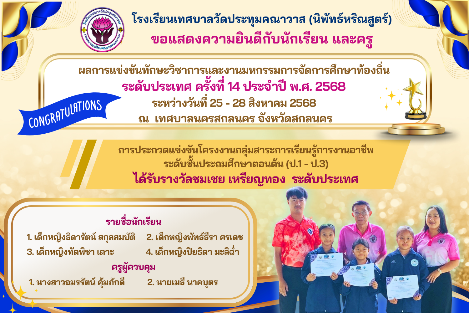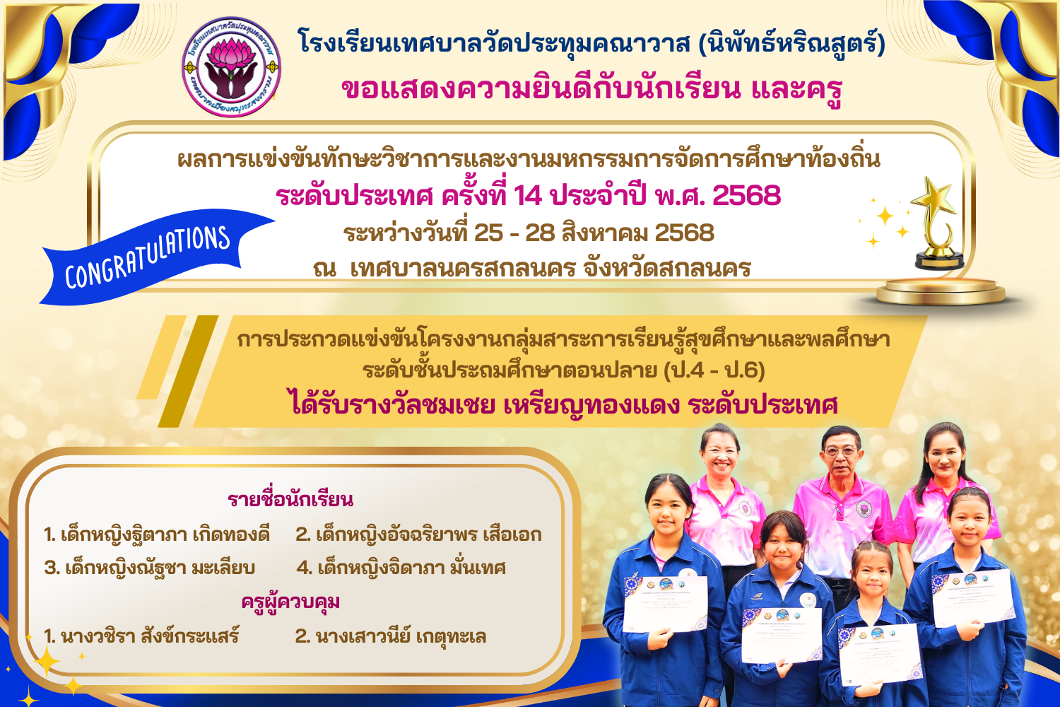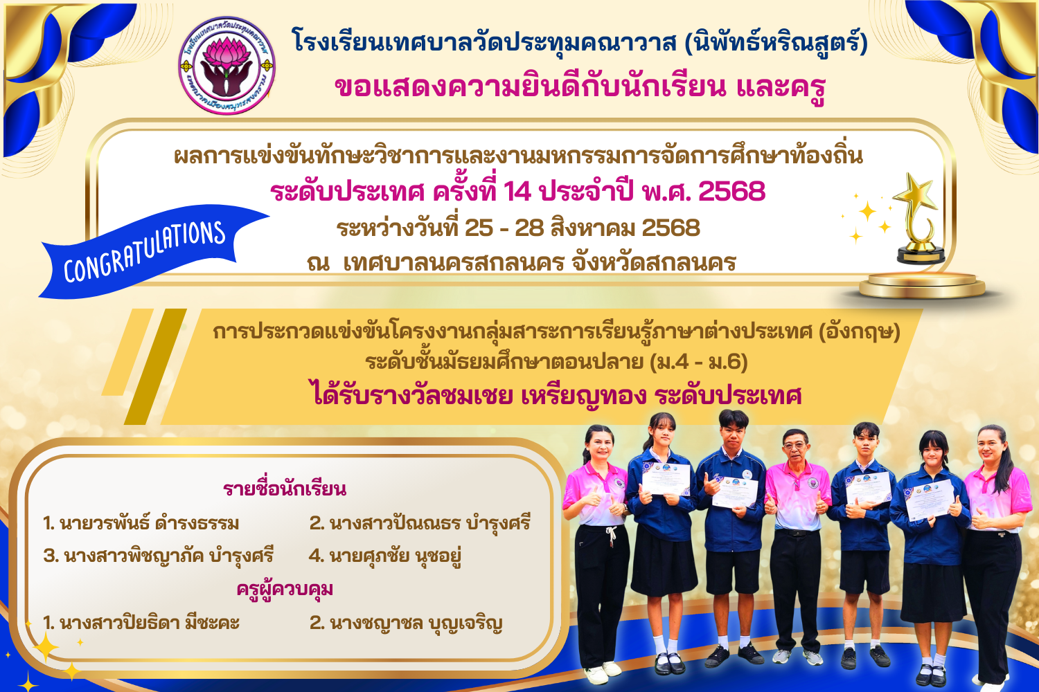 🎉 🎉 ขอแสดงความยินดีกับนักเรียนและคุณครูทุกท่าน👍