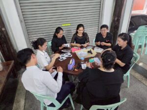:: กิจกรรมจิตอาสาร่วมกับกรมส่งเสริมการเรียนรู้ (สกร.) ตำบลแม่กลอง ทำโบว์ไว้อาลัยมอบแด่ชมรมผู้สูงอายุชุมชนวัดประทุมคณาวาส ::