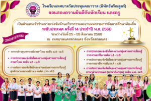 • Previous :: ขอแสดงความยินดีกับนักเรียนและคุณครูเป็นตัวแทนเข้าร่วมการแข่งขันทักษะวิชาการและงานมหกรรมการจัดการศึกษาท้องถิ่นระดับประเทศ ครั้งที่ 14 ประจำปี พ.ศ. 2568 ::