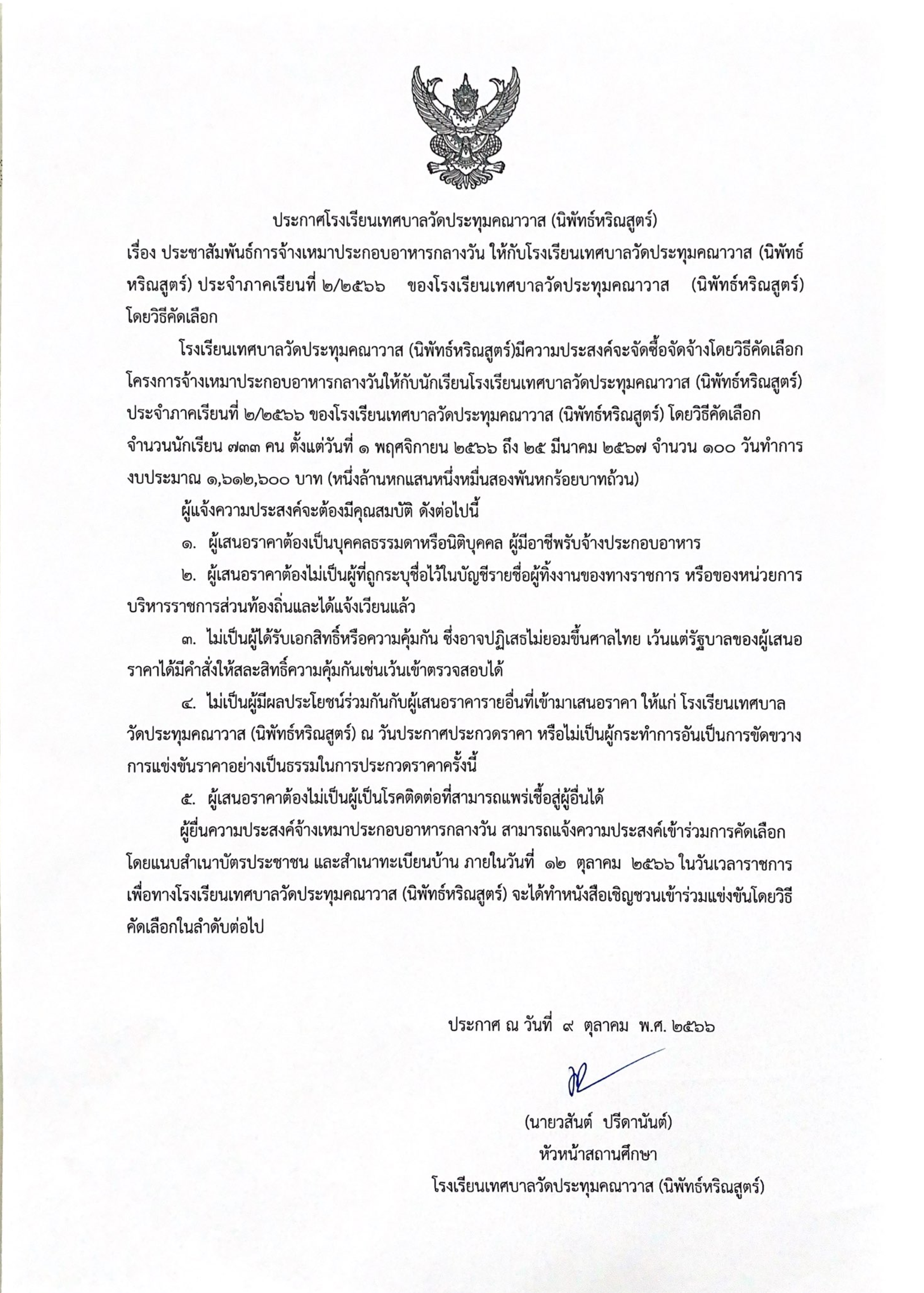 :: ประชาสัมพันธ์การจ้างเหมาประกอบอาหารกลางวัน ประจำภาคเรียนที่ 2/2566 โดยวิธีคัดเลือก :: ข่าวประชาสัมพันธ์โรงเรียน / ประกาศโรงเรียน October 10, 2023 admin
