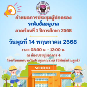 :: ประชาสัมพันธ์กำหนดการประชุมผู้ปกครองระดับชั้นอนุบาล ภาคเรียนที่ 1 ปีการศึกษา 2568 ::