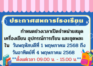 • :: ประชาสัมพันธ์วันปิดเรียนกรณีพิเศษ ในวันที่ 1-3 กรกฎาคม 2568 ::