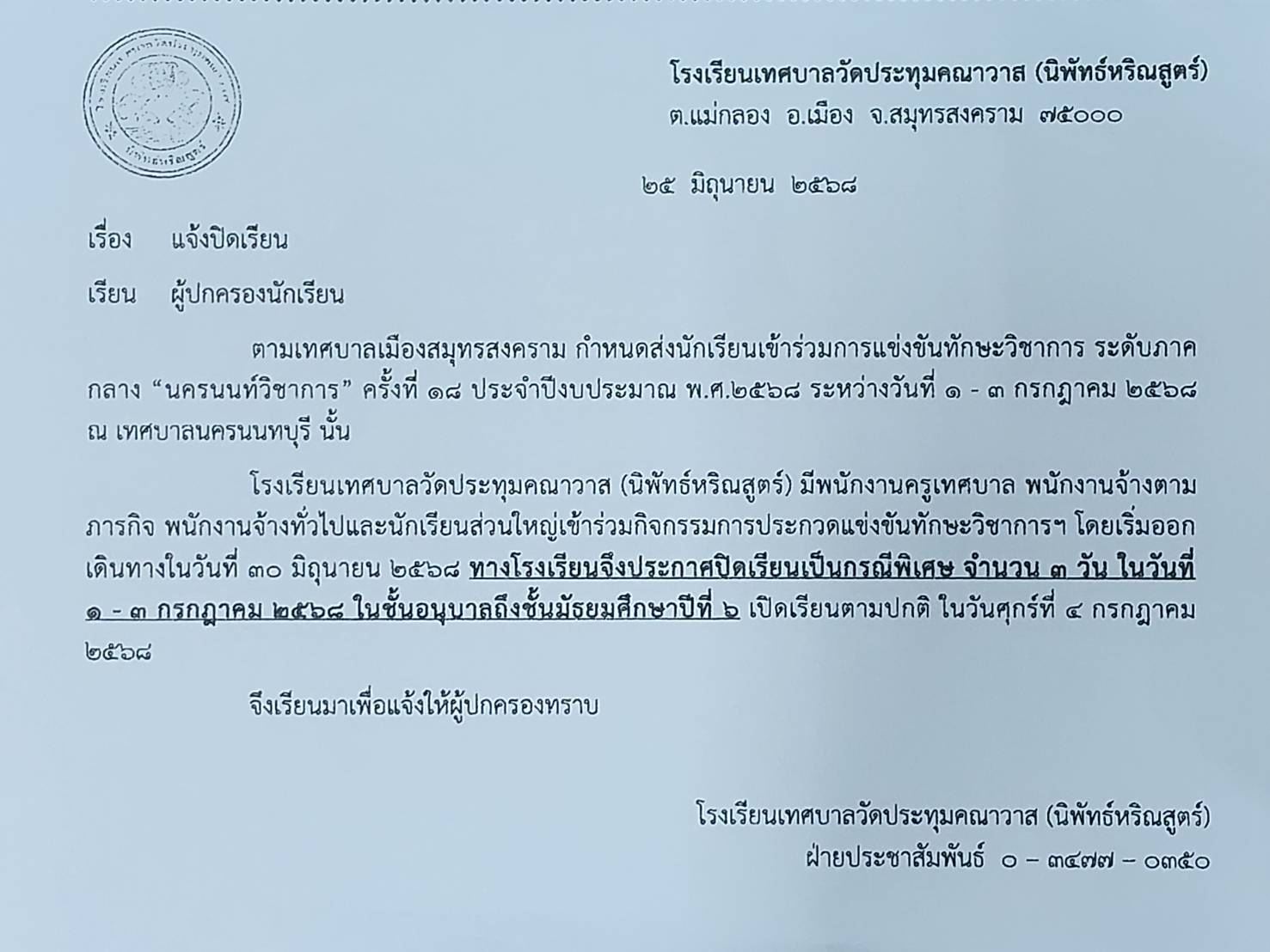 :: ประชาสัมพันธ์วันปิดเรียนกรณีพิเศษ ในวันที่ 1-3 กรกฎาคม 2568 ::