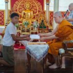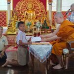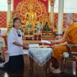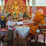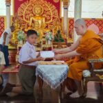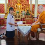 นายวสันต์ ปรีดานันต์ ผู้อำนวยการสถานศึกษา พร้อมด้วยคณะครู นำนักเรียนรับมอบทุนการศึกษาจากท่านพระครูธรรมธรไพบูลย์ ญาณวิปุโล เจ้าอาวาสวัดประทุมคณาวาส และถวายผ้าอาบน้ำฝน ณ วัดประทุมคณาวาส