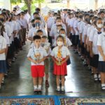 นายวสันต์ ปรีดานันต์ ผู้อำนวยการสถานศึกษา พร้อมด้วยคณะครู นักเรียน และคณะกรรมการสถานศึกษา ร่วมพิธีถวายเครื่องราชสักการะและวางพานพุ่ม พระบาทสมเด็จพระเจ้าอยู่หัว เนื่องในโอกาสวันเฉลิมพระชนมพรรษา ๒๘ กรกฎาคม ๒๕๖๖ ณ ลานโดมโรงเรียนเทศบาลวัดประทุมคณาวาส (นิพัทธ์หริณสูตร์) ![]()