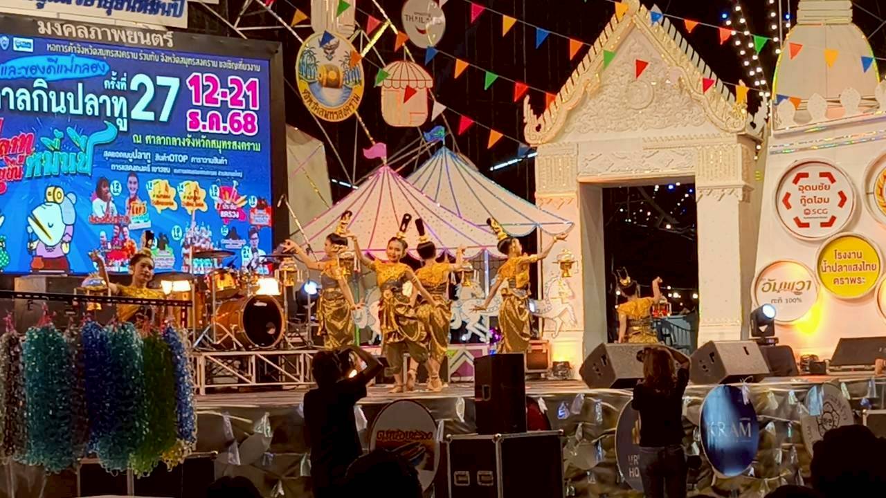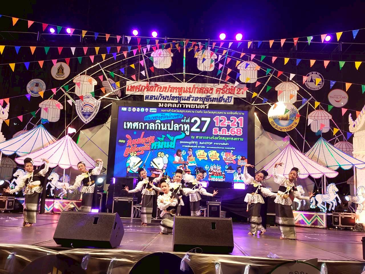 คุณครูพรทิพย์ สุโพธิณะ นำนักเรียนชุมนุมนาฏศิลป์ โรงเรียนเทศบาลวัดประทุมคณาวาส (นิพัทธ์หริณสูตร์) ทำการแสดง “ชุดการแสดงระบำโคมประทีป และชุดการแสดงฟ้อนสเลเต” ในงานเทศกาลกินปลาทู ครั้งที่ 27 ตอน “กินปลาทู แล้วอายุยืนหมื่นปี” ณ ศาลากลางจังหวัดสมุทรสงคราม