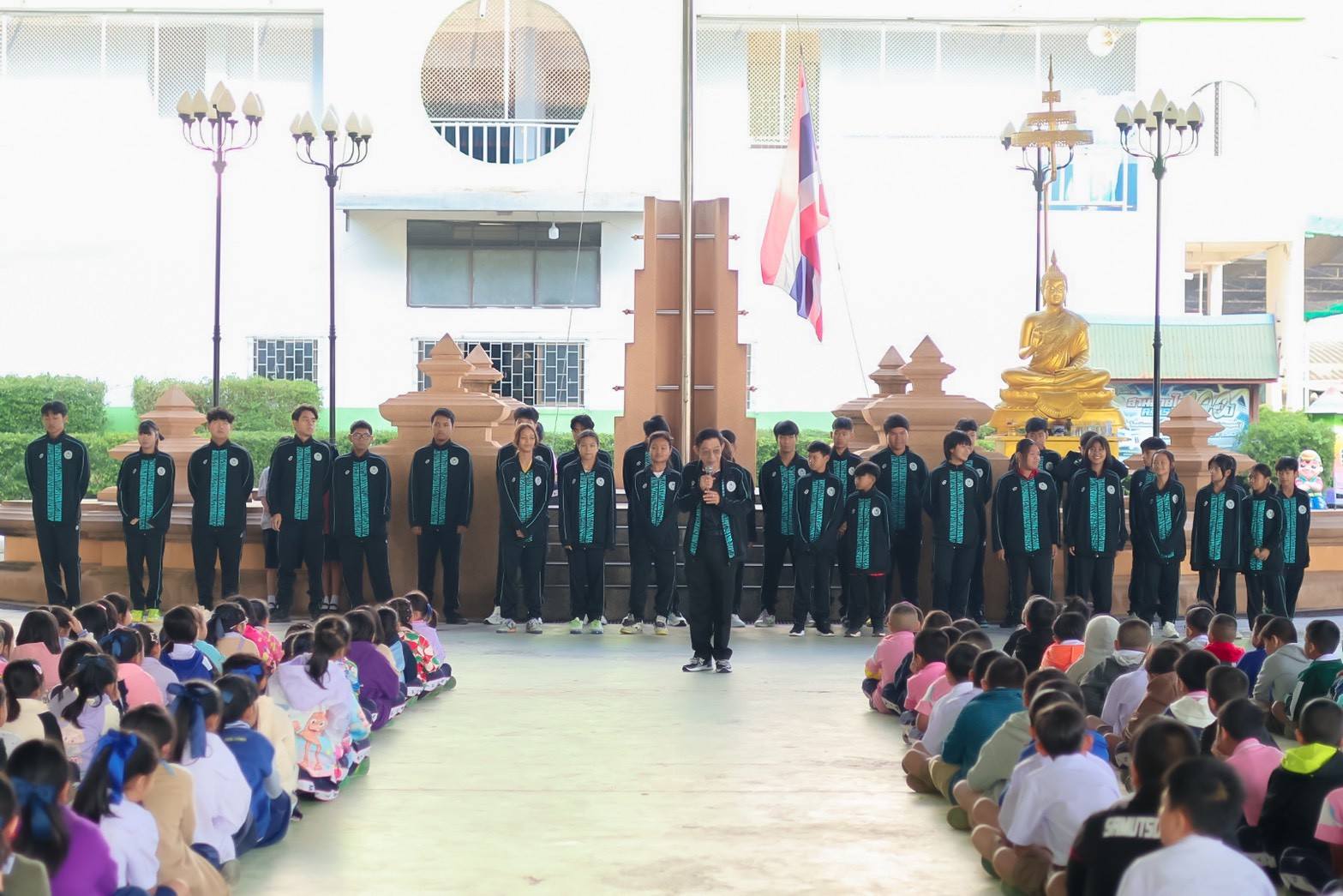 นายวสันต์ ปรีดานันต์ ผู้อำนวยการสถานศึกษา กล่าวให้โอวาท และให้กำลังใจตัวแทนนักเรียน และครูผู้ควบคุม เข้าร่วมการแข่งขันกีฬานักเรียนองค์กรปกครองส่วนท้องถิ่นแห่งประเทศไทย รอบคัดเลือก ระดับภาคกลาง ครั้งที่ 40 ประจำปีงบประมาณ พ.ศ.2569 ณ จังหวัดราชบุรี “โอ่งมังกรเกมส์ 2025”