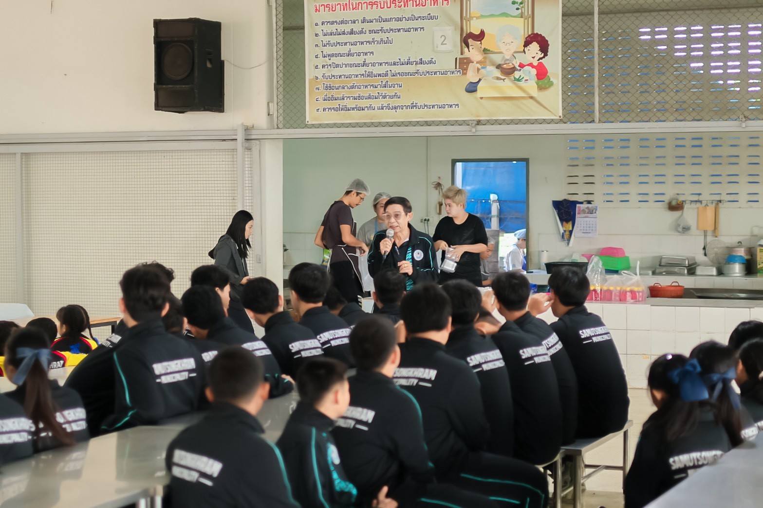 นายวสันต์ ปรีดานันต์ ผู้อำนวยการสถานศึกษา กล่าวให้โอวาท และให้กำลังใจตัวแทนนักเรียน และครูผู้ควบคุม เข้าร่วมการแข่งขันกีฬานักเรียนองค์กรปกครองส่วนท้องถิ่นแห่งประเทศไทย รอบคัดเลือก ระดับภาคกลาง ครั้งที่ 40 ประจำปีงบประมาณ พ.ศ.2569 ณ จังหวัดราชบุรี “โอ่งมังกรเกมส์ 2025”