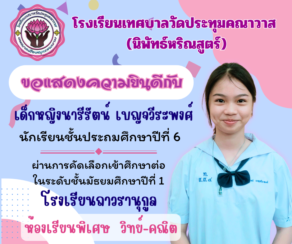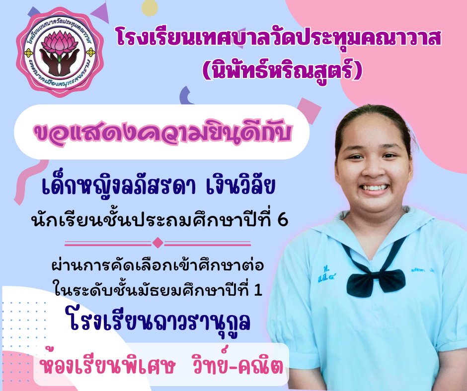 :: ขอแสดงความยินดีกับนักเรียนที่สอบผ่านการคัดเลือกเข้าศึกษาต่อในระดับชั้นมัธยมศึกษาปีที่ 1 ห้องเรียนพิเศษ วิทย์-คณิต และมัธยมศึกษาปีที่ 4 ห้องเรียนพิเศษ SMTE :: ข่าวกิจกรรม / ข่าวประชาสัมพันธ์โรงเรียน March 26, 2025 admin ขอแสดงความยินดีกับนักเรียนที่สอบผ่านการคัดเลือกเข้าศึกษาต่อในระดับชั้นมัธยมศึกษาปีที่ 1 ห้องเรียนพิเศษ วิทย์-คณิต ณ โรงเรียนถาวรานุกูล และโรงเรียนศรัทธาสมุทร และผ่านการคัดเลือกเข้าศึกษาต่อในมัธยมศึกษาปีที่ 4 ห้องเรียนพิเศษ SMTE ณ โรงเรียนถาวรานุกูล