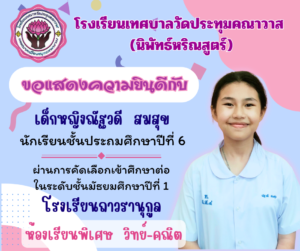 • Previous :: ขอแสดงความยินดีกับนักเรียนที่สอบผ่านการคัดเลือกเข้าศึกษาต่อในระดับชั้นมัธยมศึกษาปีที่ 1 ห้องเรียนพิเศษ วิทย์-คณิต และมัธยมศึกษาปีที่ 4 ห้องเรียนพิเศษ SMTE ::