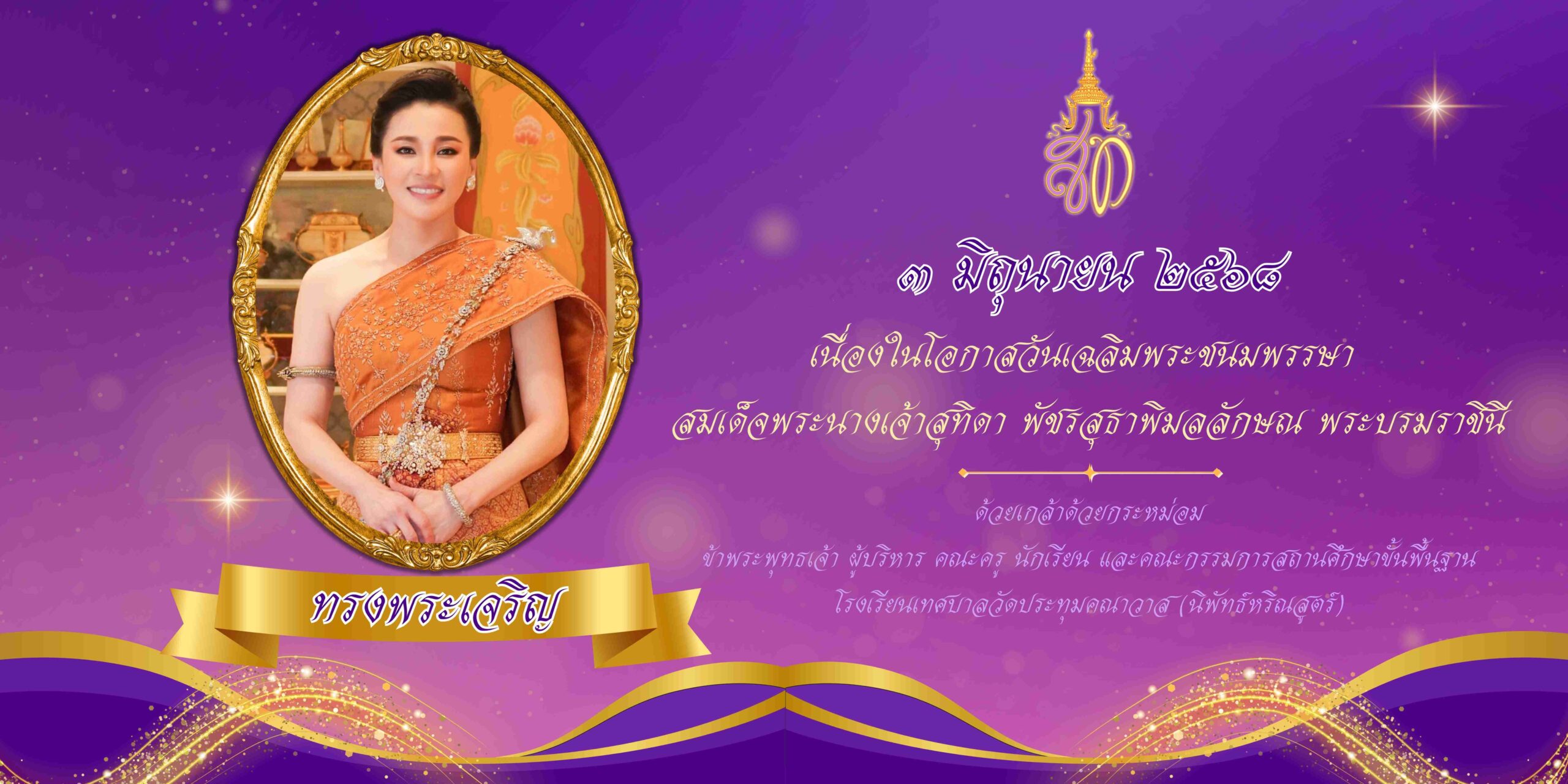 :: ๓ มิถุนายน ๒๕๖๘ เนื่องในโอกาสวันเฉลิมพระชนมพรรษา สมเด็จพระนางเจ้าสุทิดา พัชรสุธาพิมลลักษณ พระบรมราชินี ::