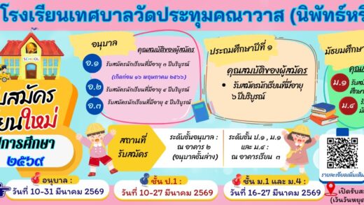 📢ประกาศโรงเรียนเทศบาลวัดประทุมคณาวาส (นิพัทธ์หริณสูตร์) เรื่อง รับสมัครการสอบและคัดเลือกรับบุคคลภายนอกเข้าเป็นครูจ้างสอนในสาขาวิชาต่างๆ และผู้ดูแลเด็กปฐมวัย ประจำปีงบประมาณ 2569 ✨รายละเอียดดังเอกสารแนบ👇